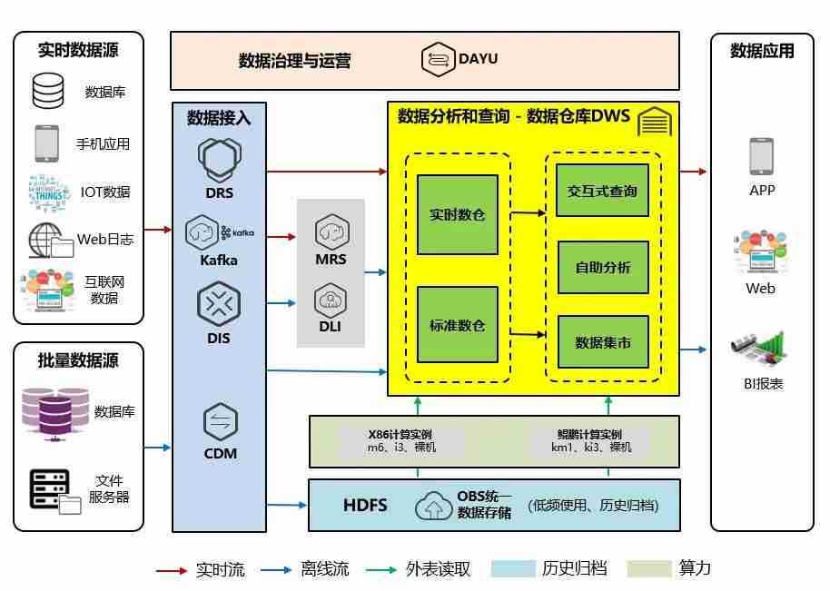 交通银行数据仓库(DWS)采用杏悦2鲲泰R722服务器作为数据底座,,,采用MPP(Massive Parallel Processing)架构,,,支持行存储与列存储,,,提供PB(Petabyte,,,,2的50次方字节)级别数据量的处理能力。。